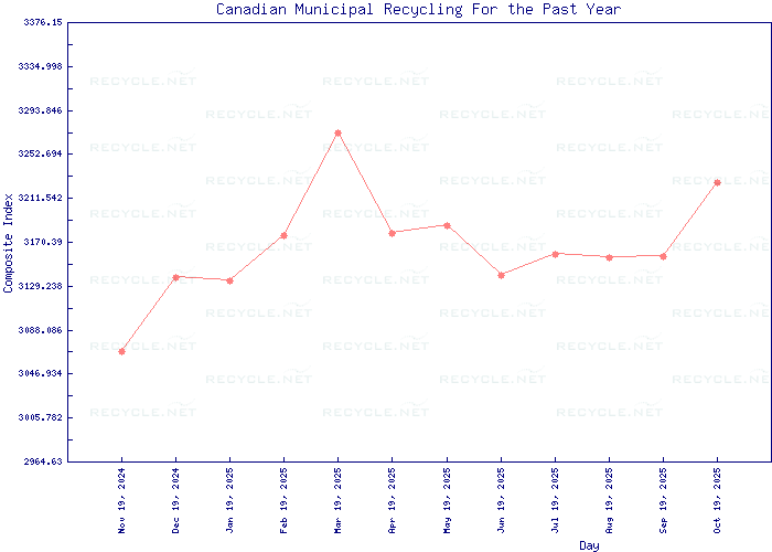 The Canadian Municipal Recycling Composite Index tracks the changing market prices of